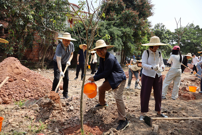 大家热情洋溢、干劲十足,一大早便准时来到岗水村。岗水村党委书记潘启强对行业党委一行人员表示热烈欢迎,并为大家热情介绍了岗水村的发展情况和特色产品。随后大家便紧锣密鼓赶往植树现场,在专业护林员的悉心指导下,大家分工协作,配合默契,挥锹铲土、扶正树苗、填土入坑、打水浇灌,每一个环节都一丝不苟。尽管烈日当头,大家依然干劲十足,热情不减。经过大家的努力,种下了一棵棵树苗,共同筑起了“行业诚信林”。这是将行业诚信建设与绿美佛山生态建设的有机融合,以具体行动践行绿色发展理念,彰显了行业服务地方发展、履行社会责任的务实作风,是行业树立和践行正确政绩观的一次生动实践。