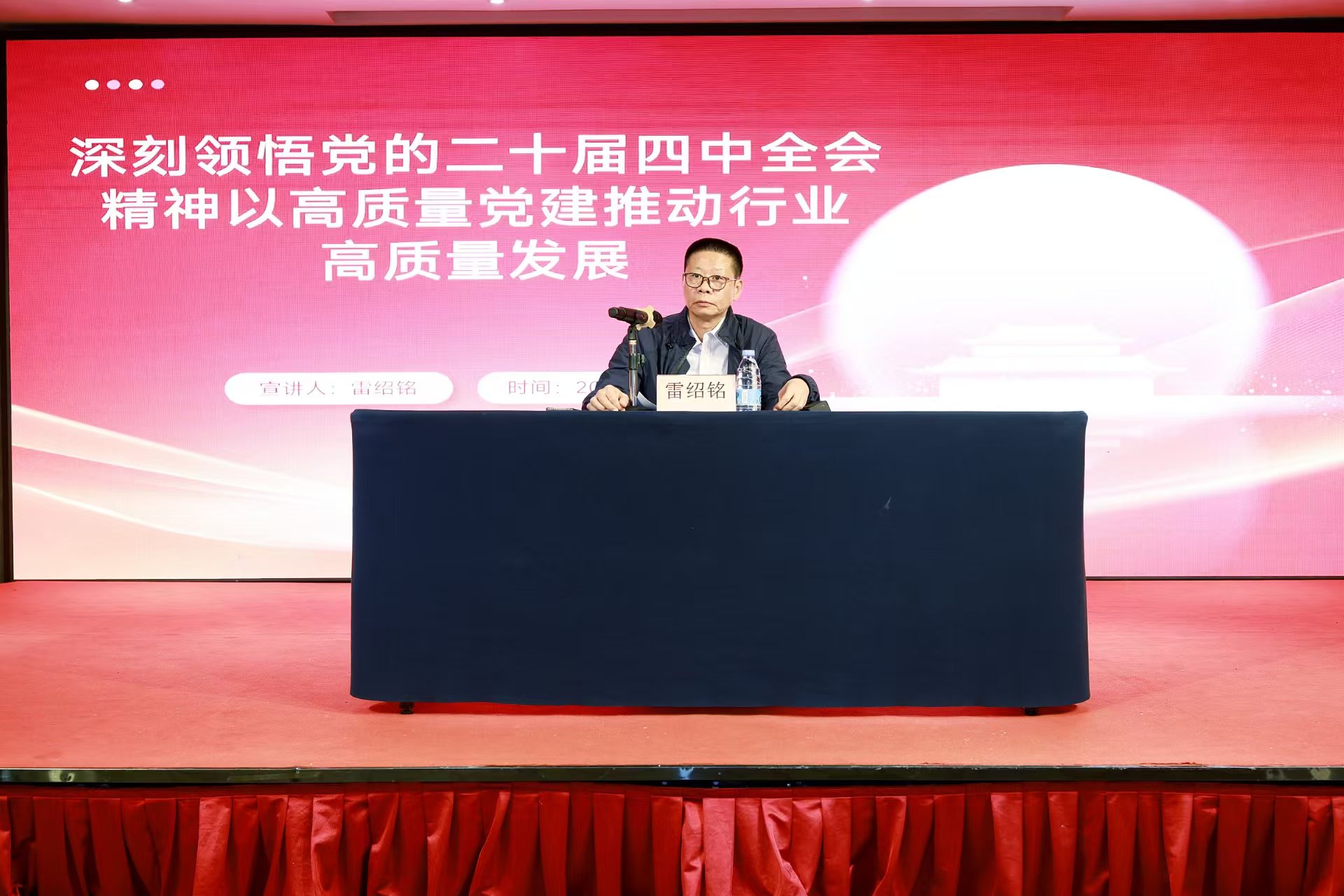 最后,市财政局党组成员、副局长、行业党委书记雷绍铭结合行业实际,宣讲党的二十届四中全会精神,并对行业发展提出五点要求: