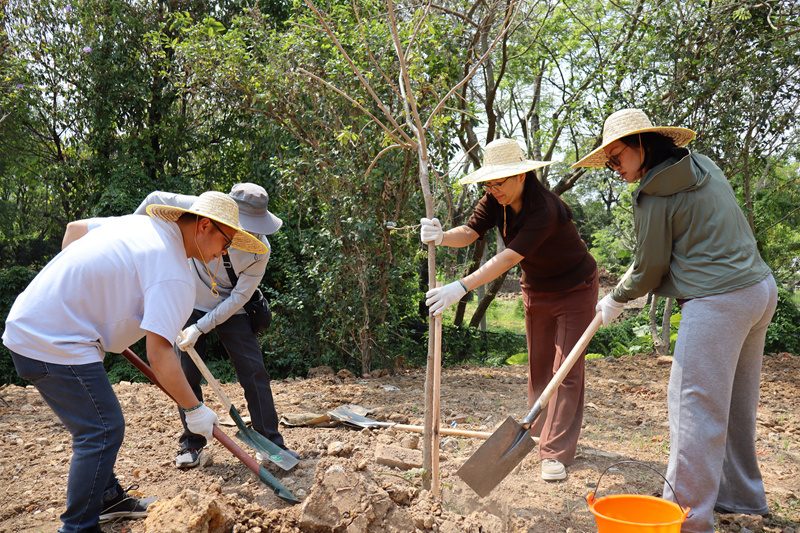 大家热情洋溢、干劲十足,一大早便准时来到岗水村。岗水村党委书记潘启强对行业党委一行人员表示热烈欢迎,并为大家热情介绍了岗水村的发展情况和特色产品。随后大家便紧锣密鼓赶往植树现场,在专业护林员的悉心指导下,大家分工协作,配合默契,挥锹铲土、扶正树苗、填土入坑、打水浇灌,每一个环节都一丝不苟。尽管烈日当头,大家依然干劲十足,热情不减。经过大家的努力,种下了一棵棵树苗,共同筑起了“行业诚信林”。这是将行业诚信建设与绿美佛山生态建设的有机融合,以具体行动践行绿色发展理念,彰显了行业服务地方发展、履行社会责任的务实作风,是行业树立和践行正确政绩观的一次生动实践。